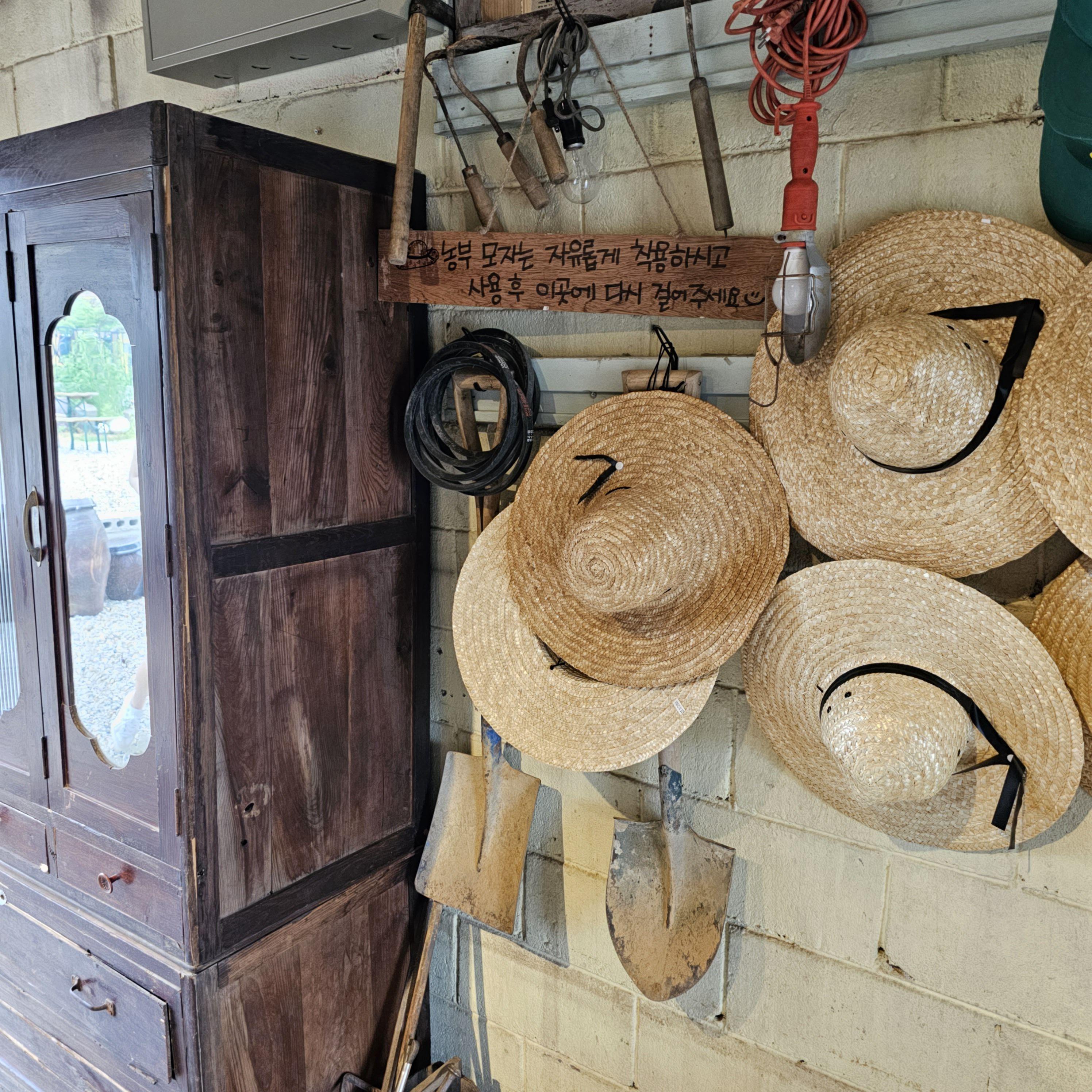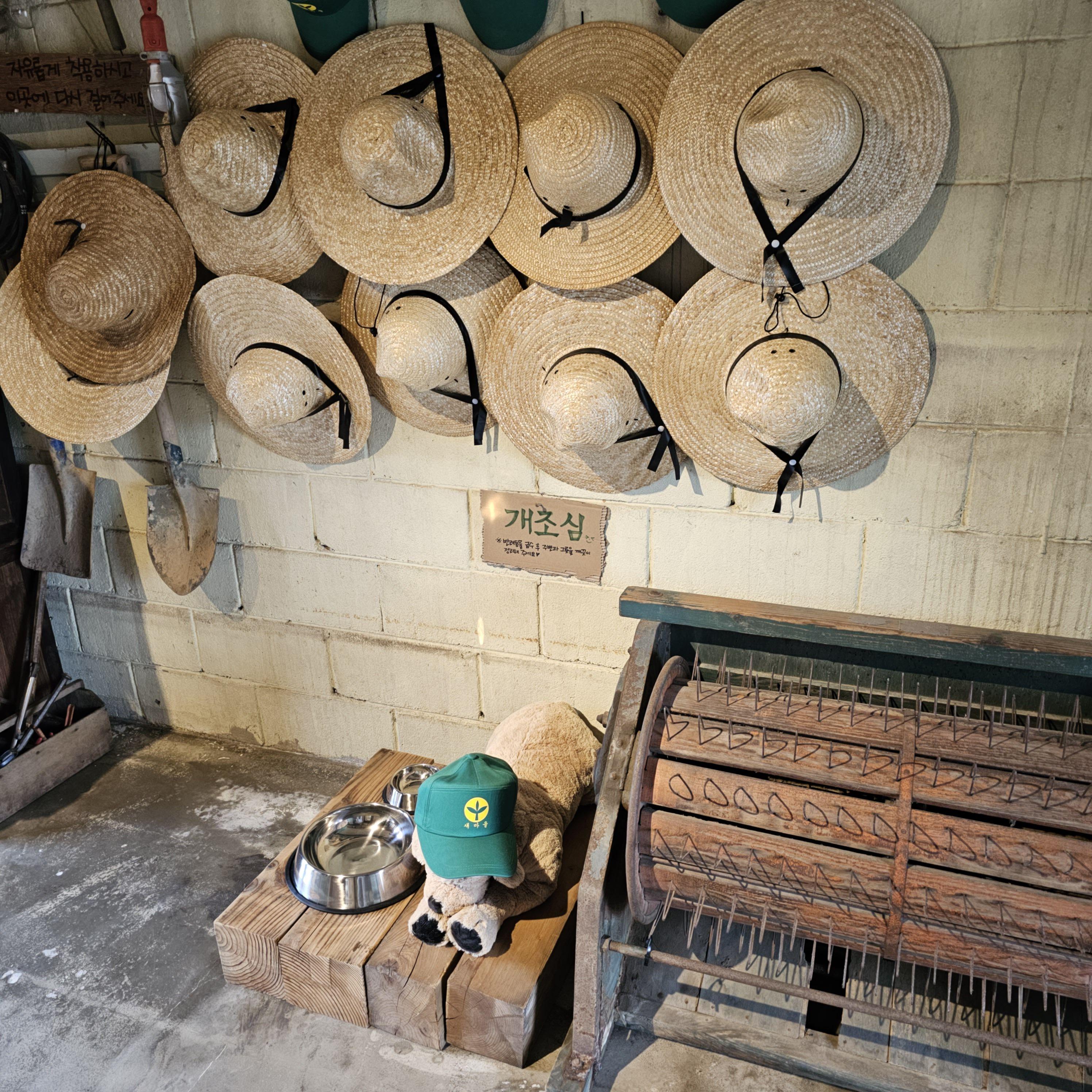 메뉴 주문 후 천천히 돌아보는데 농부 모자를 빌려 쓸수 있었어요.